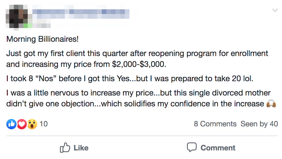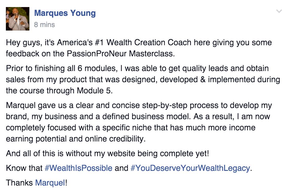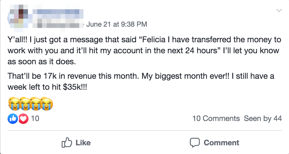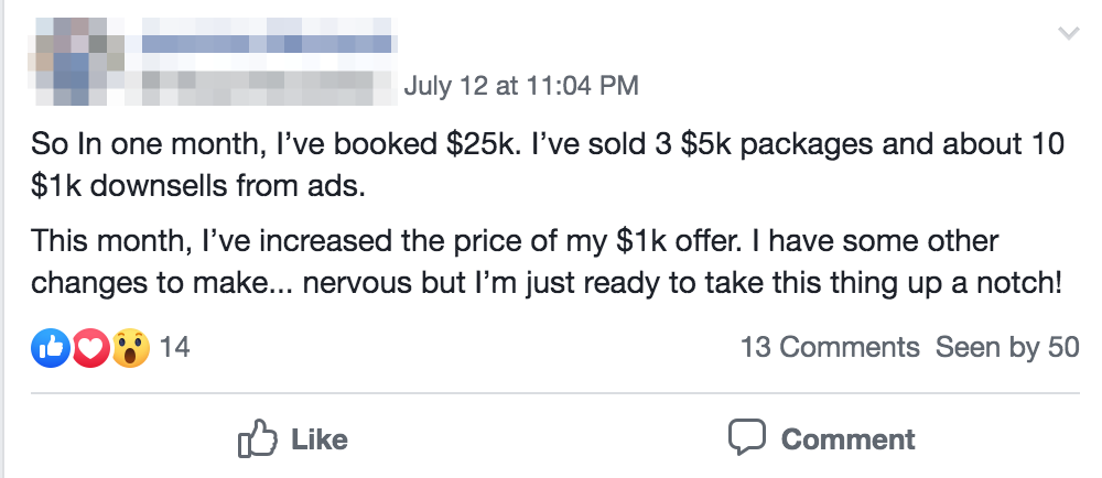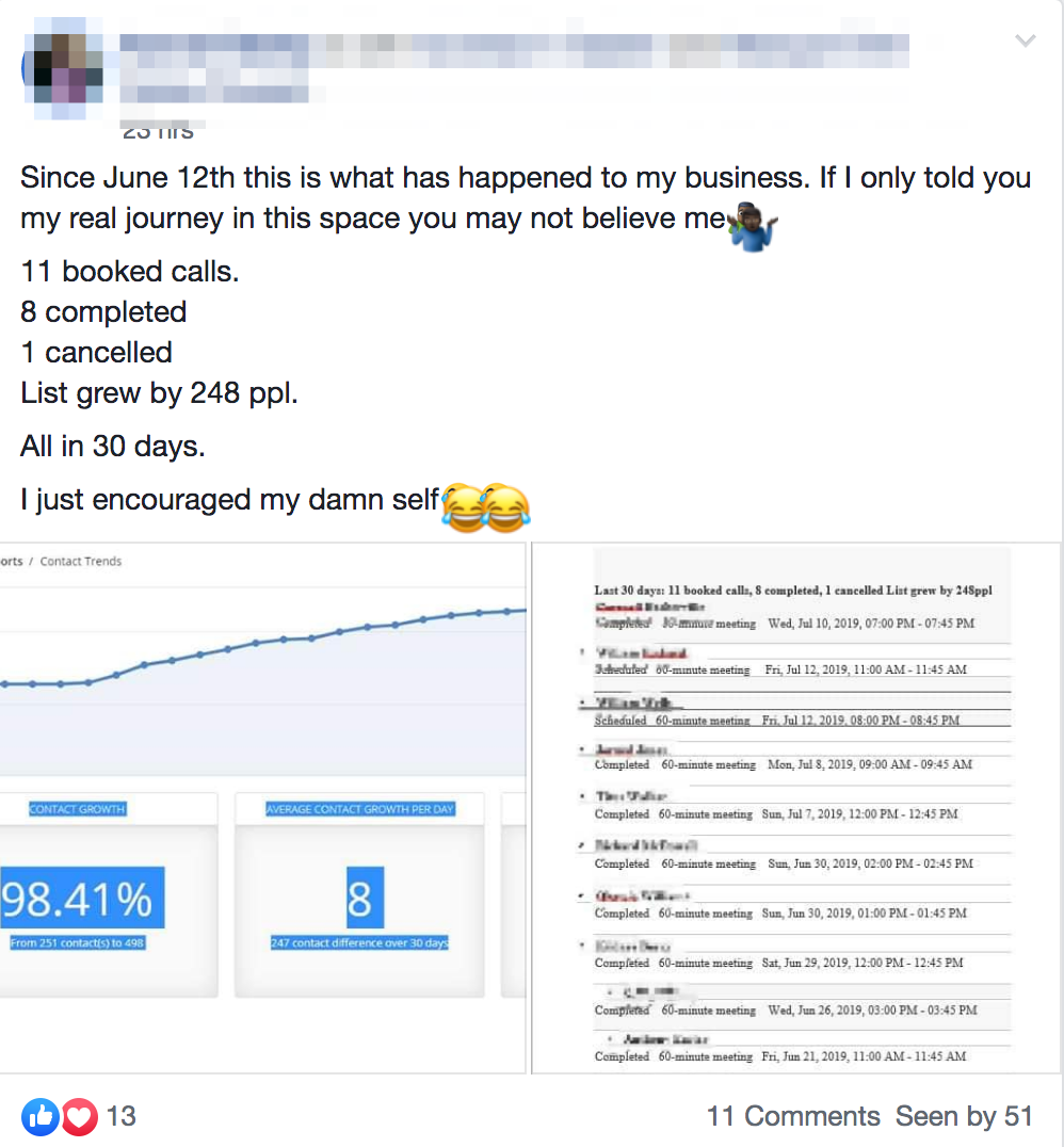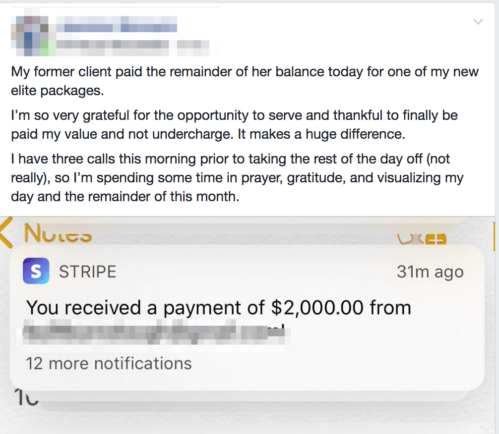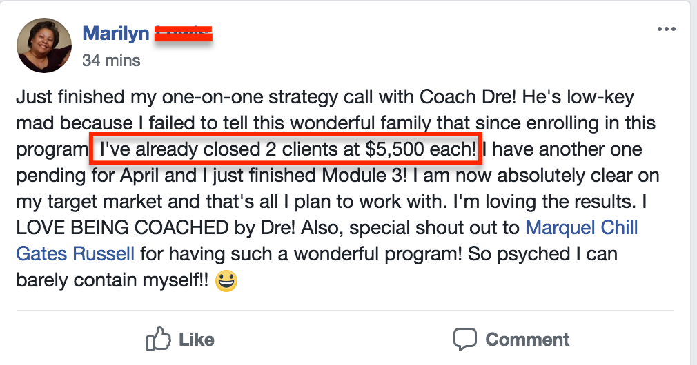Here you’ll also get to meet people just like you who are either in the same position or who have already gone through this program and are now doing 5 and 6 figure months (you may even get clients and strategic partnerships from the events).