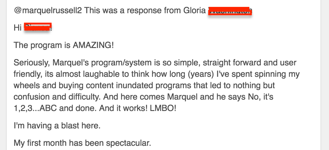 Not only are you going to get personal mentoring on the weekly calls but you are going to get virtually unlimited access to our Client Success Team throughout the entire process whenever you need help or want something reviewed we’ll be there for you.