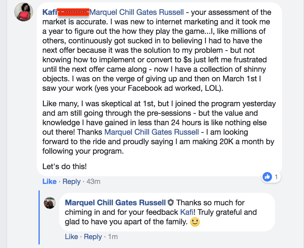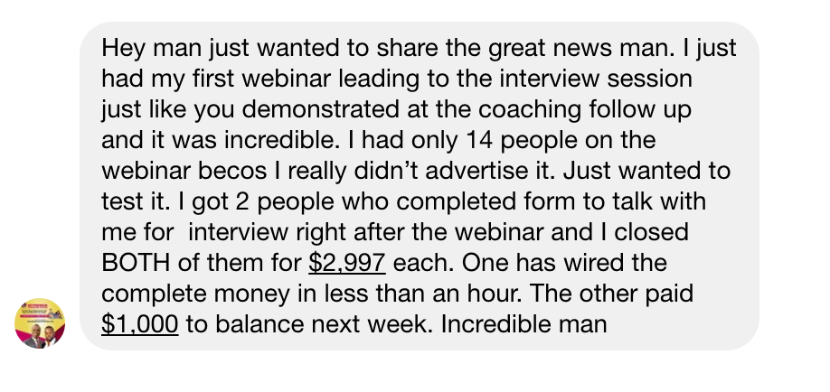 For example, let’s say by the time you come, you’re already at $50,000 per month and now you’re ready to hit $100,000 per month, the whole focus at the event will be for you to leave with a specific game plan to hit that goal within the time frame that’s allocated based on the strategy laid out for you at the event.