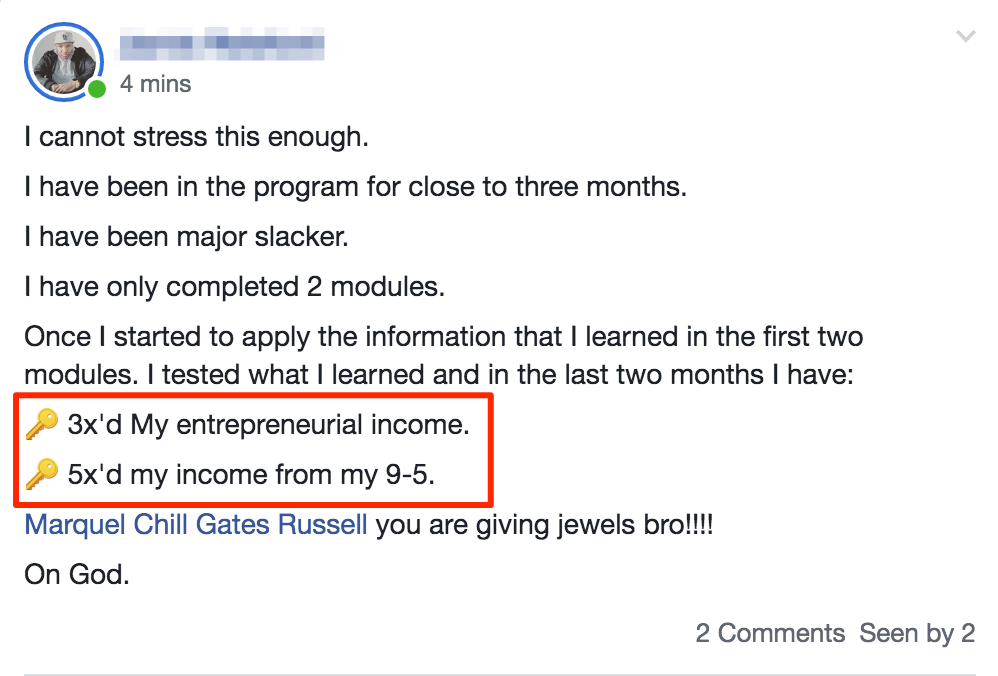 The online university just serves as a resource so it’s not the meat of the program and not designed for you to watch 100s of videos and figure this stuff out on your end. The program is designed to get you results at a rapid pace.